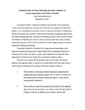 A transcript of Linda Darling-Hammond's 2007 testimony before the House Education and Labor Committee on the draft bill to re-authorize No Child Left Behind.